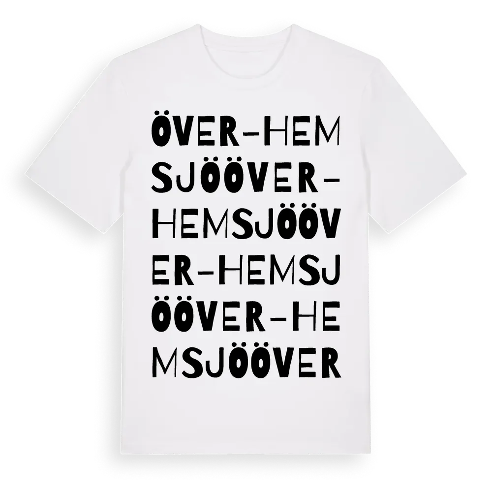 En ordlek byggd på Över-Hemsjös namn. Subtilt och klurig – ett motiv som bara de som verkligen känner platsen fullt ut förstår. Premium bomull, unisex – från Över-Hemsjö i Västernorrlands län.