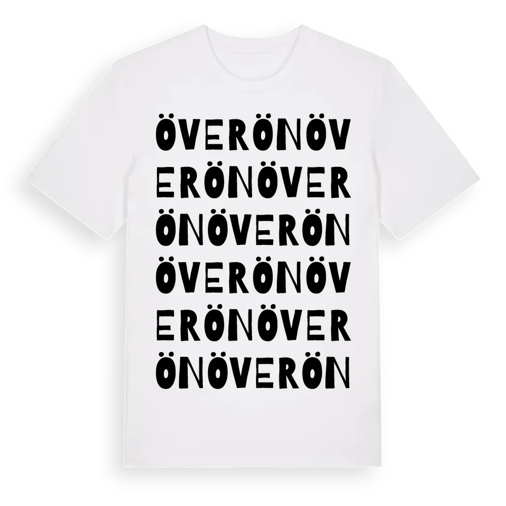 Överön ordlek t-shirt är inspirerad av byn Överön i Västernorrlands län, Sverige. Tröjan är designad för dig som har en speciell koppling till platsen – oavsett om du bor här, har rötterna här eller bara älskar Överön.