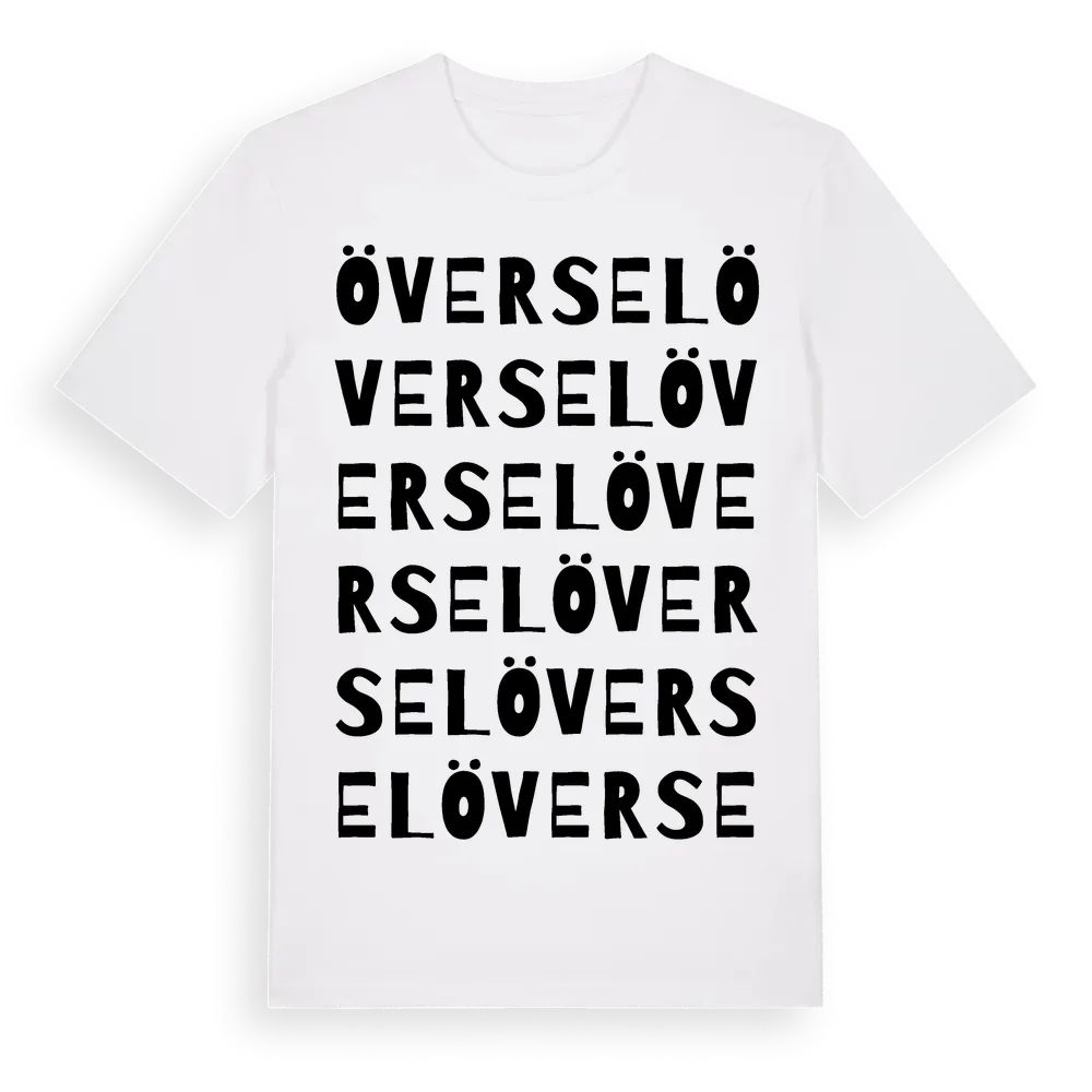 Översel ordlek t-shirt är inspirerad av byn Översel i Västernorrlands län, Sverige. Tröjan är designad för dig som har en speciell koppling till platsen – oavsett om du bor här, har rötterna här eller bara älskar Översel.
