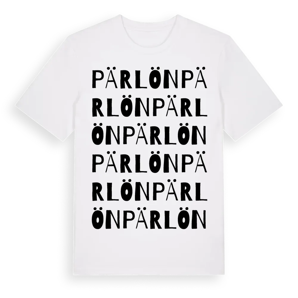 Pärlön ordlek t-shirt är inspirerad av ön Pärlön i Västernorrlands län, Sverige. Tröjan är designad för dig som har en speciell koppling till platsen – oavsett om du bor här, har rötterna här eller bara älskar Pärlön.