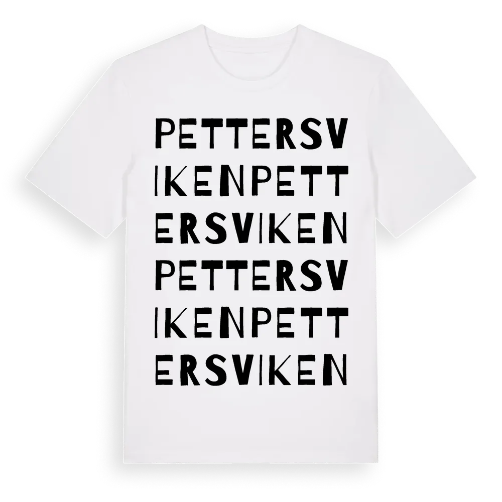 Pettersviken ordlek t-shirt är inspirerad av Pettersviken i Västernorrlands län, Sverige. Tröjan är designad för dig som har en speciell koppling till platsen – oavsett om du bor här, har rötterna här eller bara älskar Pettersviken.