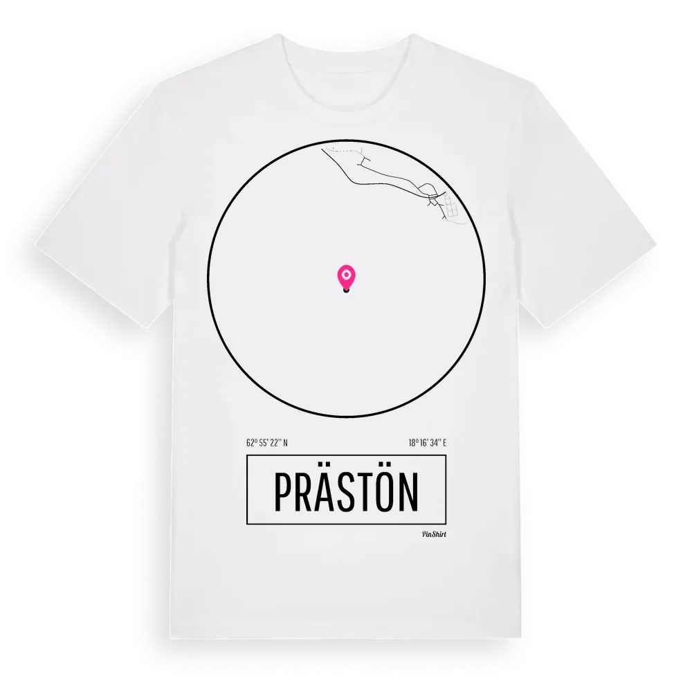 Prästön t-shirt är inspirerad av ön Prästön i Västernorrlands län, Sverige. Tröjan är designad för dig som har en speciell koppling till platsen – oavsett om du bor här, har rötterna här eller bara älskar Prästön.