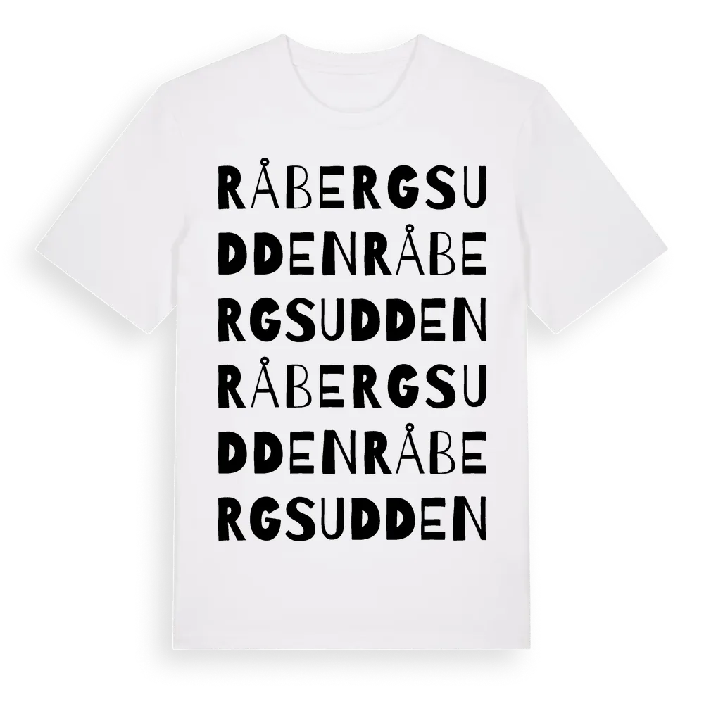 Råbergsudden ordlek t-shirt är inspirerad av Råbergsudden i Västernorrlands län, Sverige. Tröjan är designad för dig som har en speciell koppling till platsen – oavsett om du bor här, har rötterna här eller bara älskar Råbergsudden.