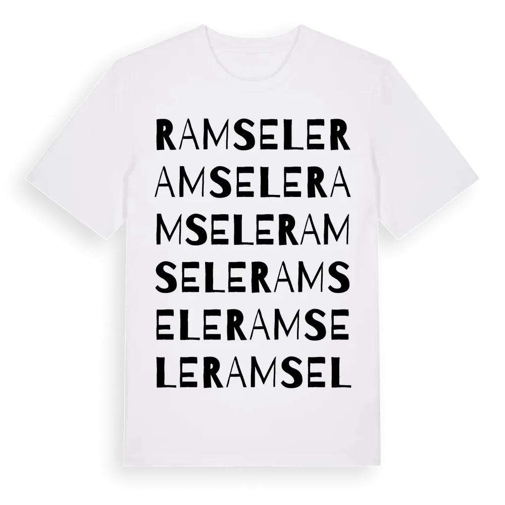 Ramsele ordlek t-shirt är inspirerad av byn Ramsele i Västernorrlands län, Sverige. Tröjan är designad för dig som har en speciell koppling till platsen – oavsett om du bor här, har rötterna här eller bara älskar Ramsele.