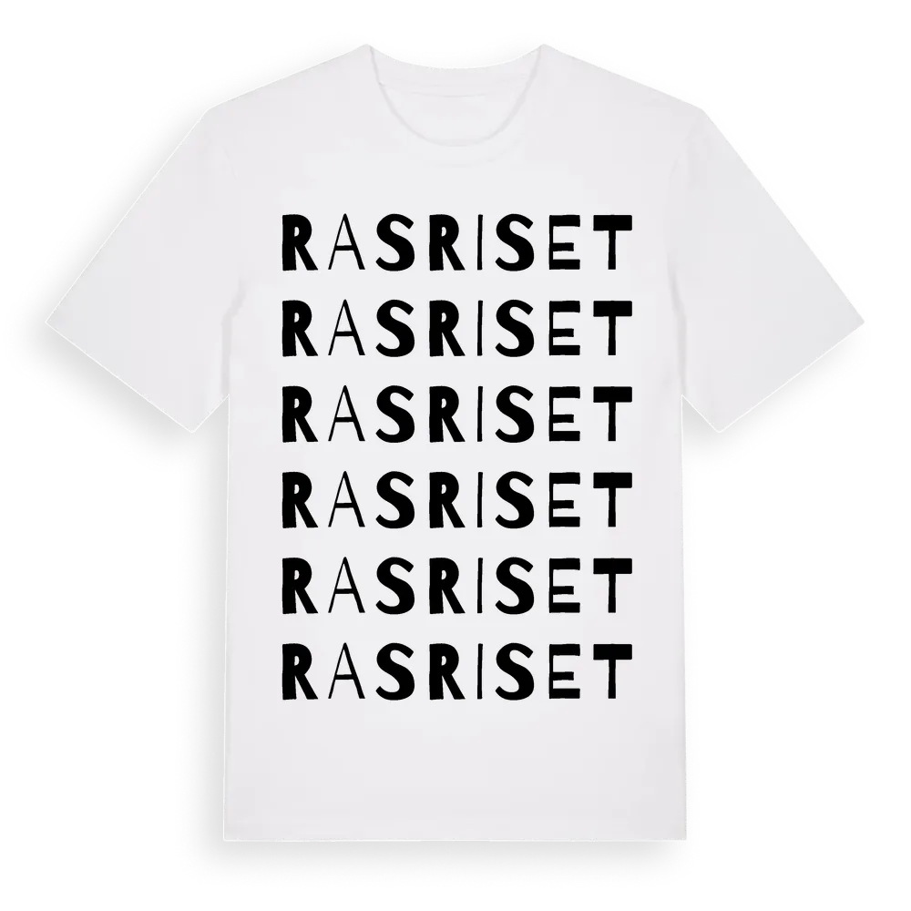 En ordlek byggd på Rasrisets namn. Subtilt och klurig – ett motiv som bara de som verkligen känner platsen fullt ut förstår. Premium bomull, unisex – från Rasriset i Västernorrlands län.