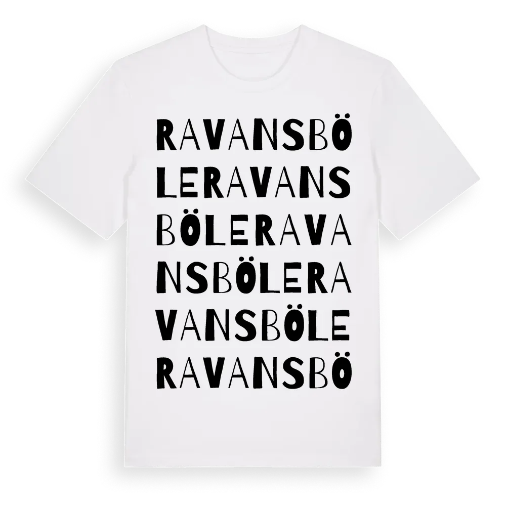 Ravansböle ordlek t-shirt är inspirerad av Ravansböle i Västernorrlands län, Sverige. Tröjan är designad för dig som har en speciell koppling till platsen – oavsett om du bor här, har rötterna här eller bara älskar Ravansböle.
