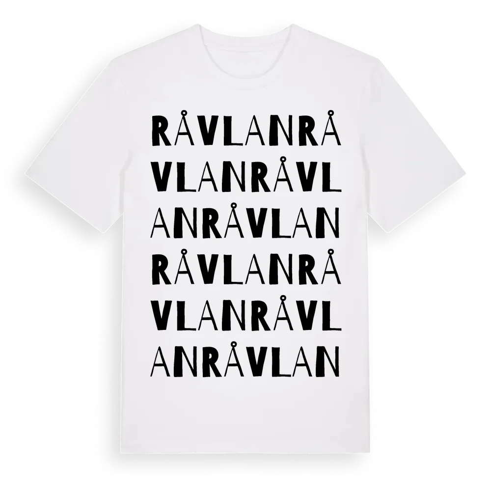 Råvlan ordlek t-shirt är inspirerad av byn Råvlan i Västernorrlands län, Sverige. Tröjan är designad för dig som har en speciell koppling till platsen – oavsett om du bor här, har rötterna här eller bara älskar Råvlan.