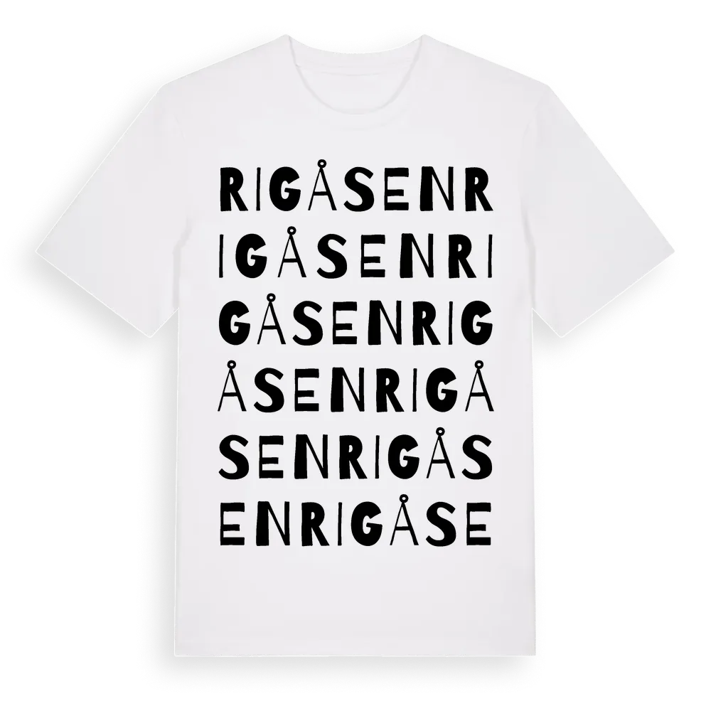 Rigåsen ordlek t-shirt är inspirerad av Rigåsen i Västernorrlands län, Sverige. Tröjan är designad för dig som har en speciell koppling till platsen – oavsett om du bor här, har rötterna här eller bara älskar Rigåsen.