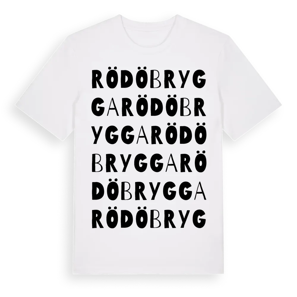 Rödö Brygga ordlek t-shirt är inspirerad av byn Rödö Brygga i Västernorrlands län, Sverige. Tröjan är designad för dig som har en speciell koppling till platsen – oavsett om du bor här, har rötterna här eller bara älskar Rödö Brygga.