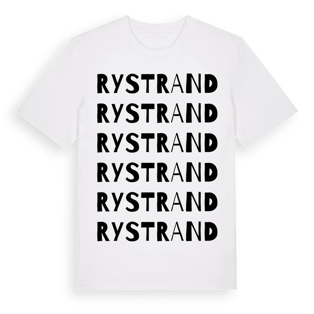 En ordlek byggd på Rystrands namn. Subtilt och klurig – ett motiv som bara de som verkligen känner platsen fullt ut förstår. Premium bomull, unisex – från byn Rystrand i Västernorrlands län.