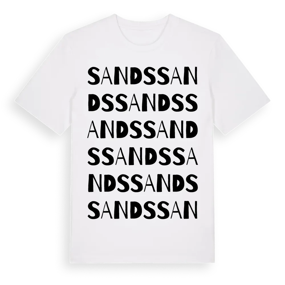 Sands ordlek t-shirt är inspirerad av byn Sands i Västernorrlands län, Sverige. Tröjan är designad för dig som har en speciell koppling till platsen – oavsett om du bor här, har rötterna här eller bara älskar Sands.