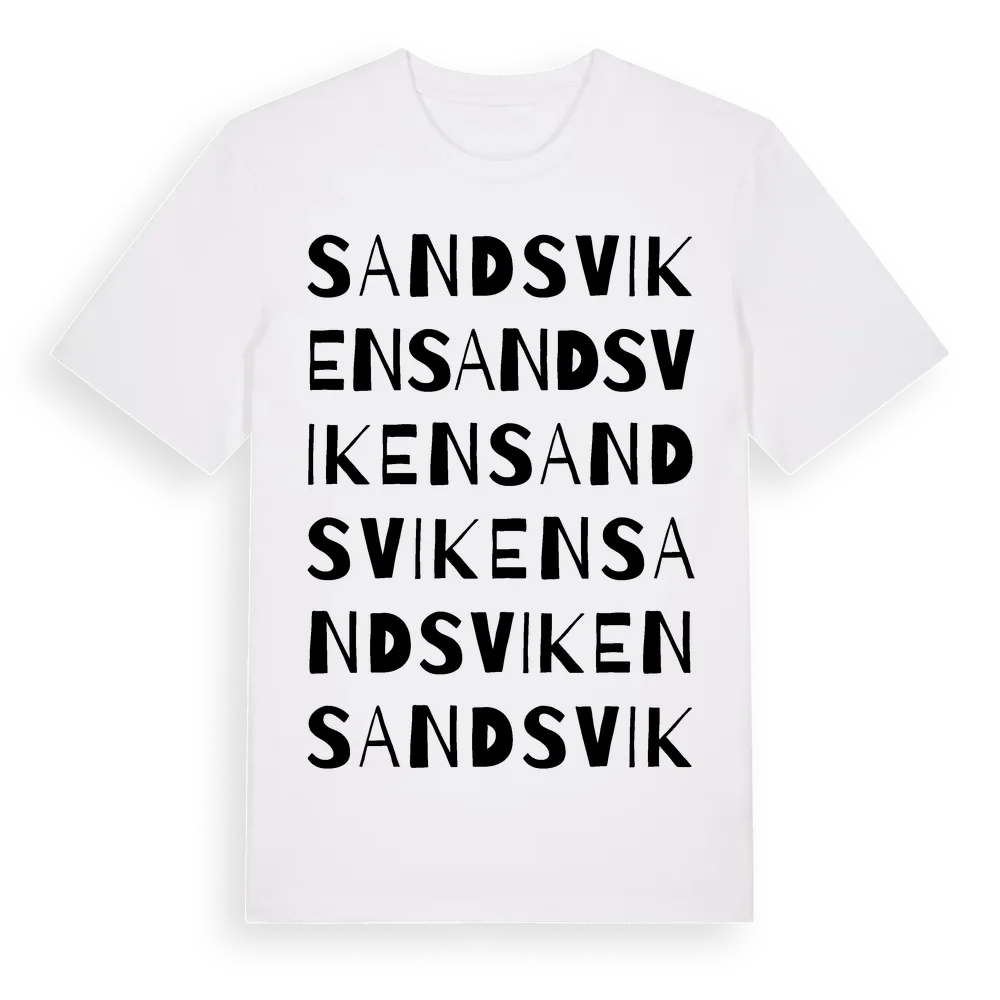 Sandsviken ordlek t-shirt är inspirerad av byn Sandsviken i Västernorrlands län, Sverige. Tröjan är designad för dig som har en speciell koppling till platsen – oavsett om du bor här, har rötterna här eller bara älskar Sandsviken.