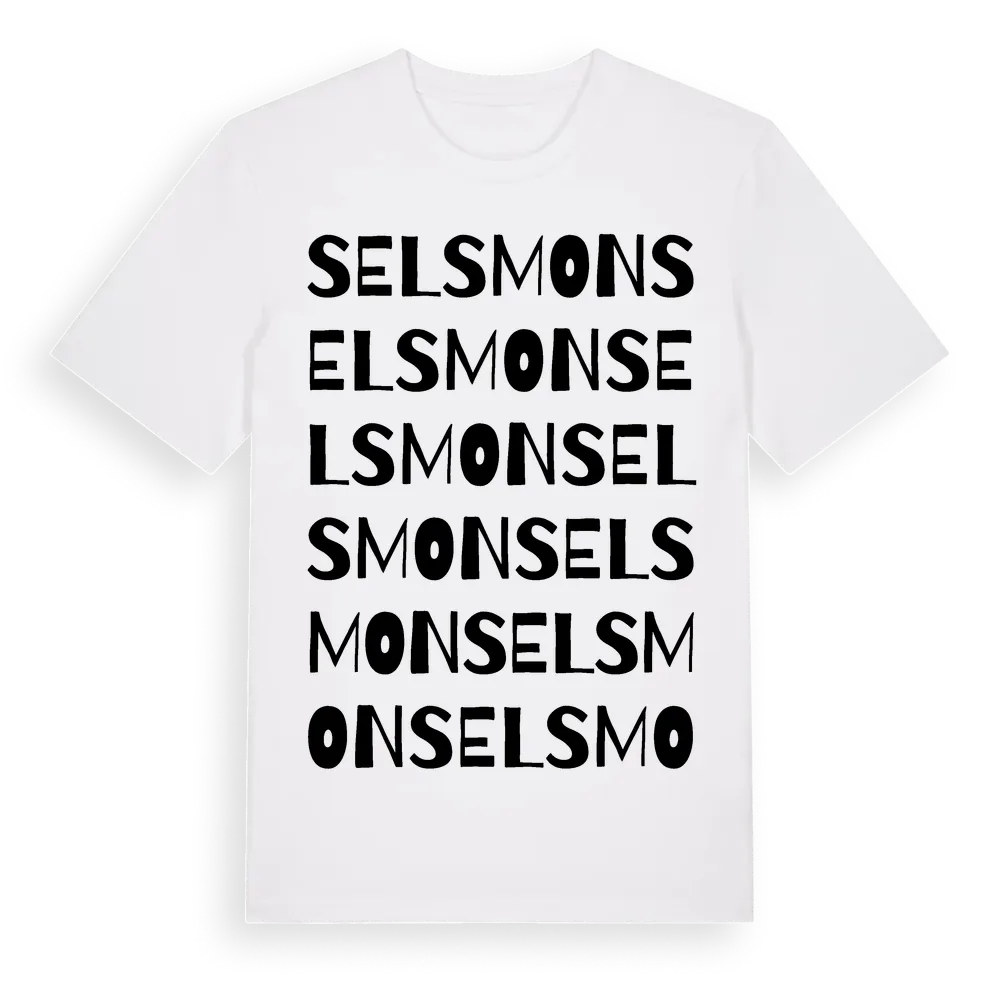 Selsmon ordlek t-shirt är inspirerad av Selsmon i Västernorrlands län, Sverige. Tröjan är designad för dig som har en speciell koppling till platsen – oavsett om du bor här, har rötterna här eller bara älskar Selsmon.