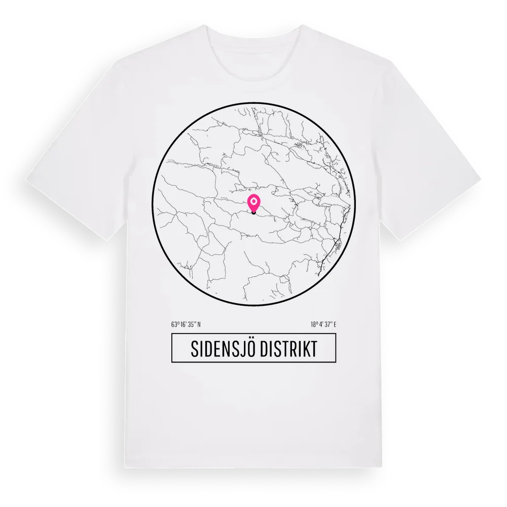Sidensjö Distrikt t-shirt är inspirerad av Sidensjö Distrikt i Västernorrlands län, Sverige. Tröjan är designad för dig som har en speciell koppling till platsen – oavsett om du bor här, har rötterna här eller bara älskar Sidensjö Distrikt.