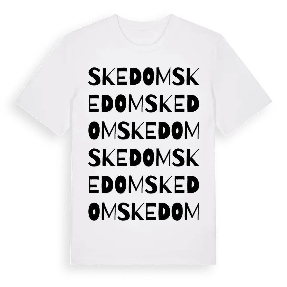 Skedom ordlek t-shirt är inspirerad av byn Skedom i Västernorrlands län, Sverige. Tröjan är designad för dig som har en speciell koppling till platsen – oavsett om du bor här, har rötterna här eller bara älskar Skedom.