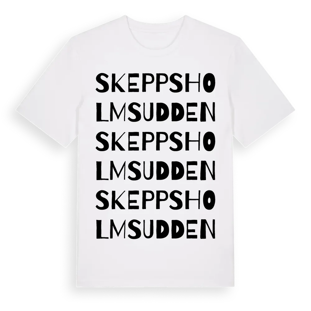 Skeppsholmsudden ordlek t-shirt är inspirerad av Skeppsholmsudden i Västernorrlands län, Sverige. Tröjan är designad för dig som har en speciell koppling till platsen – oavsett om du bor här, har rötterna här eller bara älskar Skeppsholmsudden.