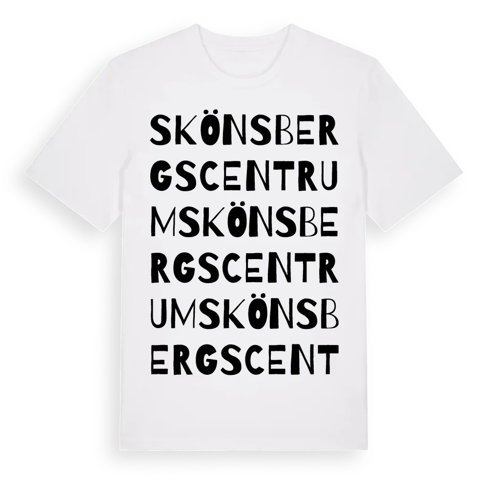 Skönsbergs Centrum ordlek t-shirt är inspirerad av stadsdelen Skönsbergs Centrum i Västernorrlands län, Sverige. Tröjan är designad för dig som har en speciell koppling till platsen – oavsett om du bor här, har rötterna här eller bara älskar Skönsbergs Centrum.