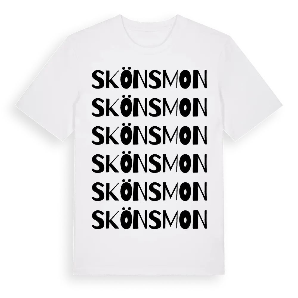 Skönsmon ordlek t-shirt är inspirerad av stadsdelen Skönsmon i Västernorrlands län, Sverige. Tröjan är designad för dig som har en speciell koppling till platsen – oavsett om du bor här, har rötterna här eller bara älskar Skönsmon.