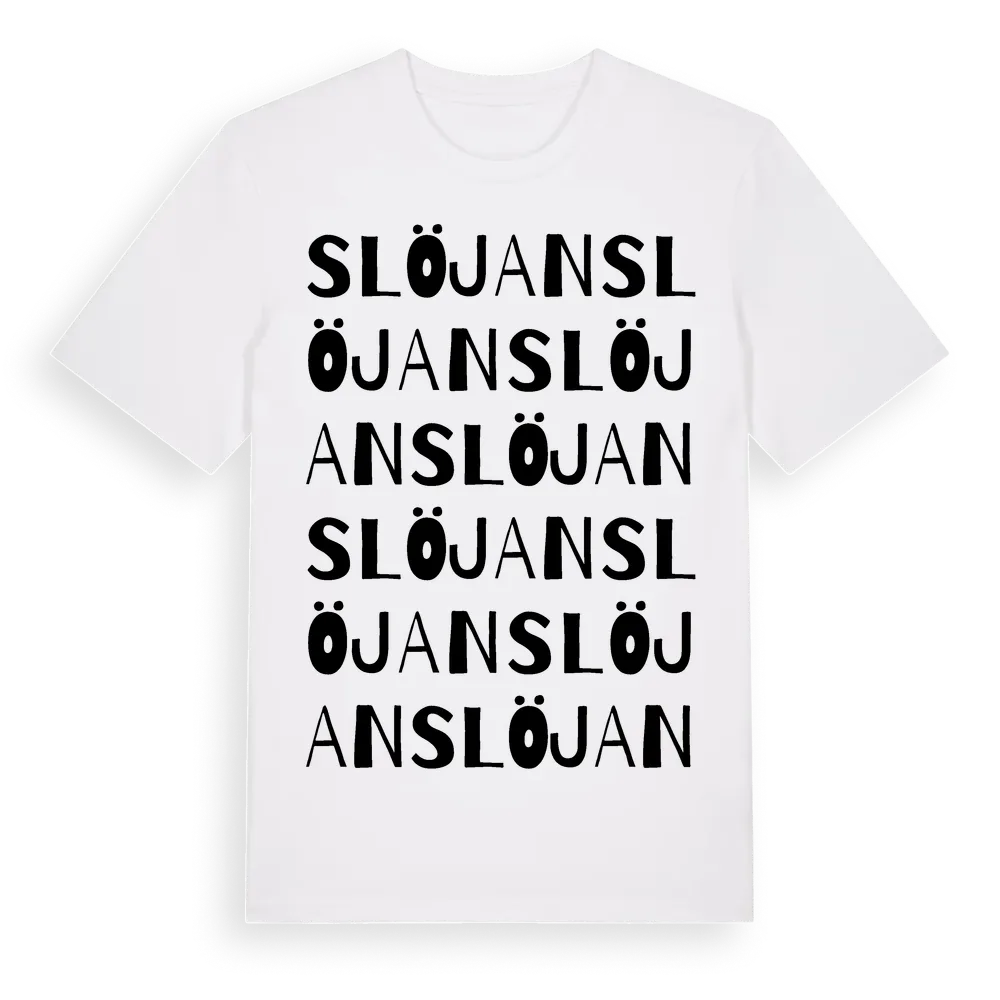 Slöjan ordlek t-shirt är inspirerad av byn Slöjan i Västernorrlands län, Sverige. Tröjan är designad för dig som har en speciell koppling till platsen – oavsett om du bor här, har rötterna här eller bara älskar Slöjan.