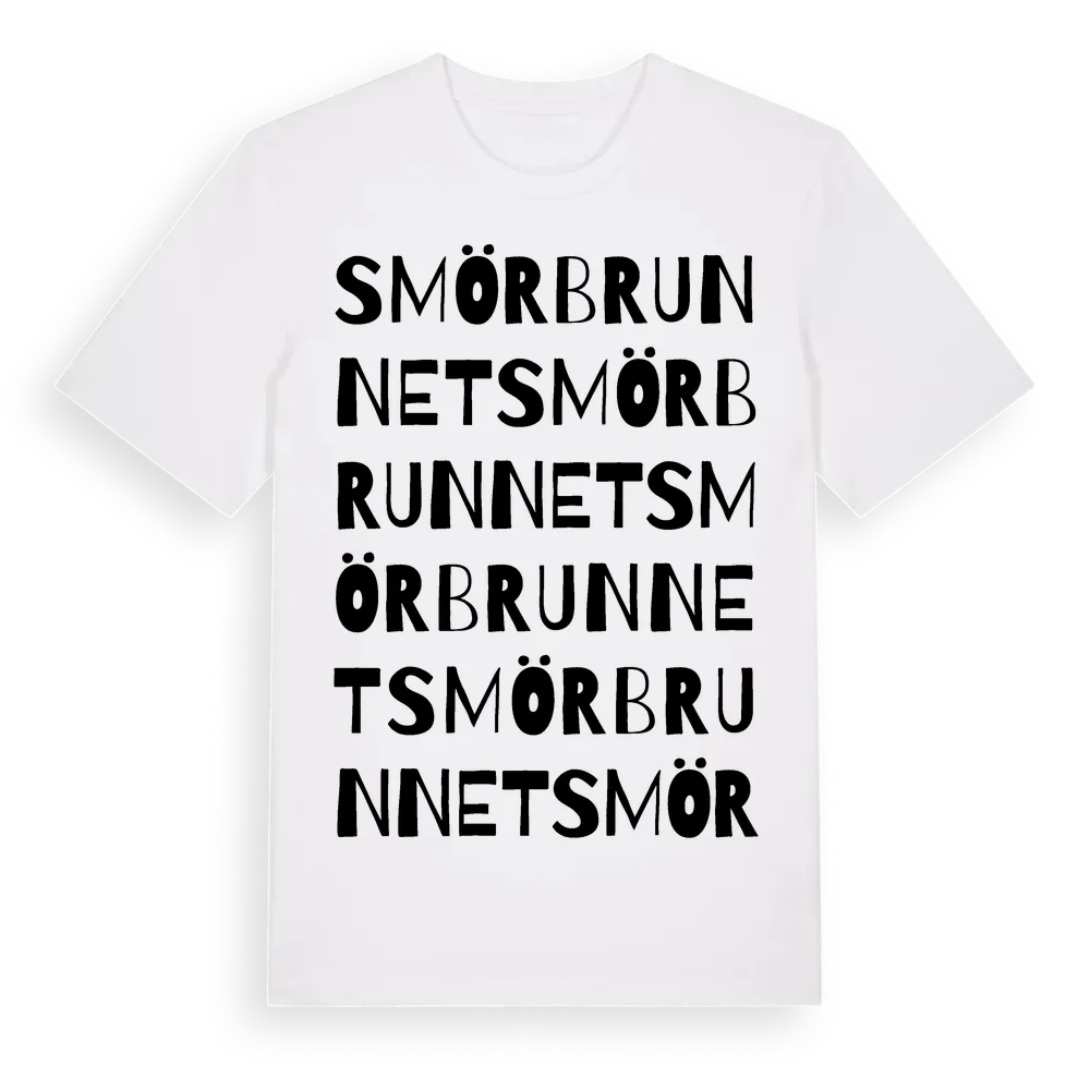 Smörbrunnet ordlek t-shirt är inspirerad av Smörbrunnet i Västernorrlands län, Sverige. Tröjan är designad för dig som har en speciell koppling till platsen – oavsett om du bor här, har rötterna här eller bara älskar Smörbrunnet.