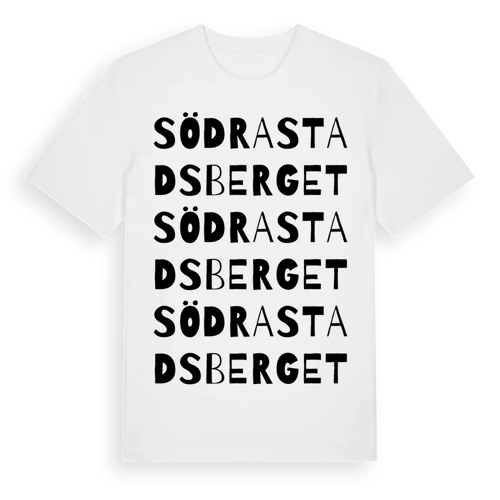 Södra Stadsberget ordlek t-shirt är inspirerad av stadsdelen Södra Stadsberget i Västernorrlands län, Sverige. Tröjan är designad för dig som har en speciell koppling till platsen – oavsett om du bor här, har rötterna här eller bara älskar Södra Stadsberget.