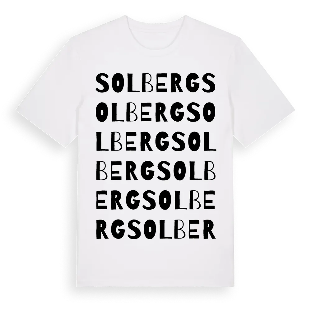 Solberg ordlek t-shirt är inspirerad av Solberg i Västernorrlands län, Sverige. Tröjan är designad för dig som har en speciell koppling till platsen – oavsett om du bor här, har rötterna här eller bara älskar Solberg.