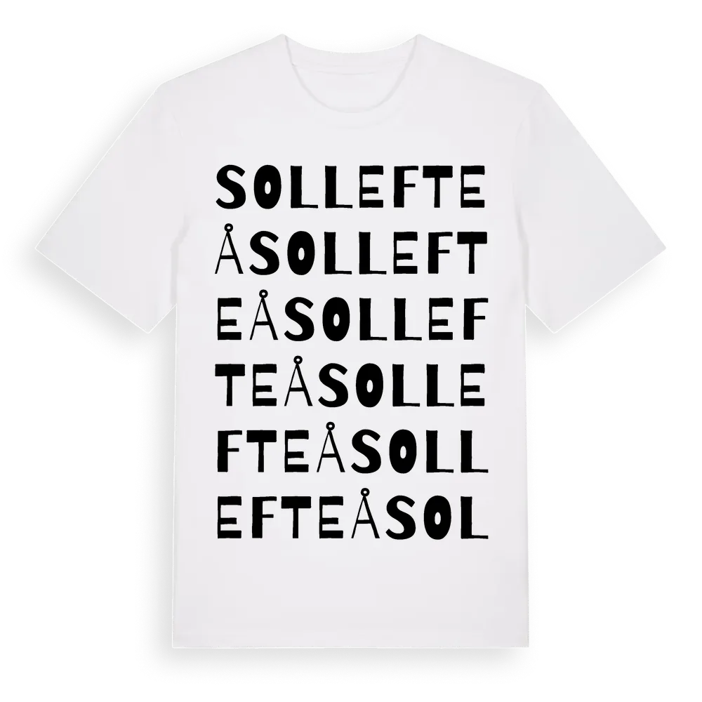 Sollefteå ordlek t-shirt är inspirerad av staden Sollefteå i Västernorrlands län, Sverige. Tröjan är designad för dig som har en speciell koppling till platsen – oavsett om du bor här, har rötterna här eller bara älskar Sollefteå.