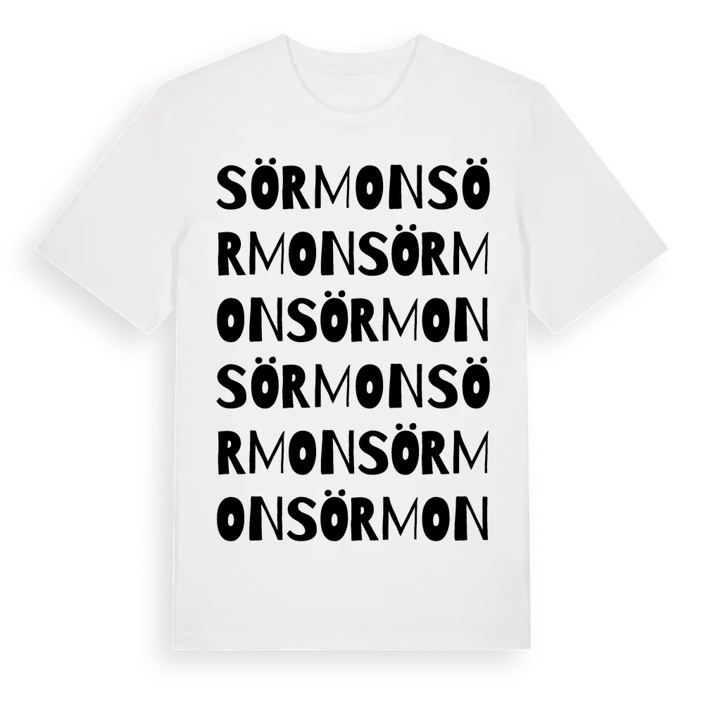 Sörmon ordlek t-shirt är inspirerad av Sörmon i Västernorrlands län, Sverige. Tröjan är designad för dig som har en speciell koppling till platsen – oavsett om du bor här, har rötterna här eller bara älskar Sörmon.