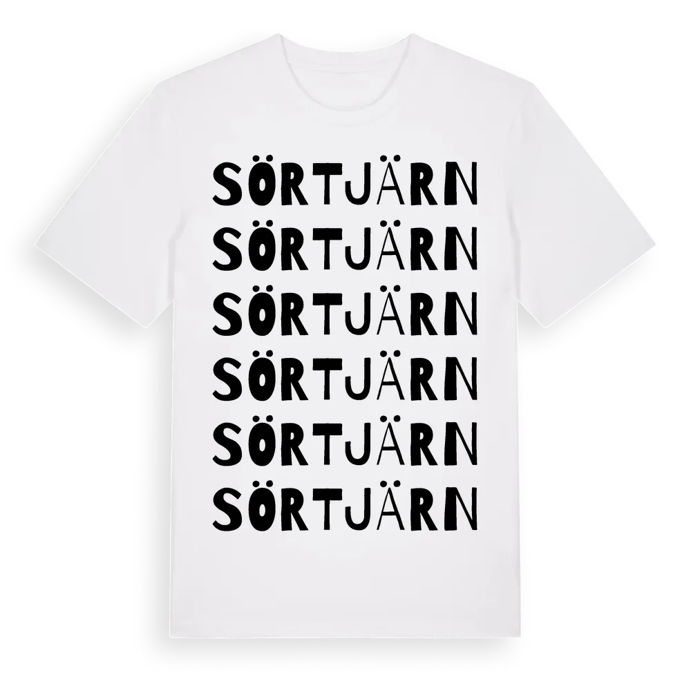 Sörtjärn ordlek t-shirt är inspirerad av byn Sörtjärn i Västernorrlands län, Sverige. Tröjan är designad för dig som har en speciell koppling till platsen – oavsett om du bor här, har rötterna här eller bara älskar Sörtjärn.