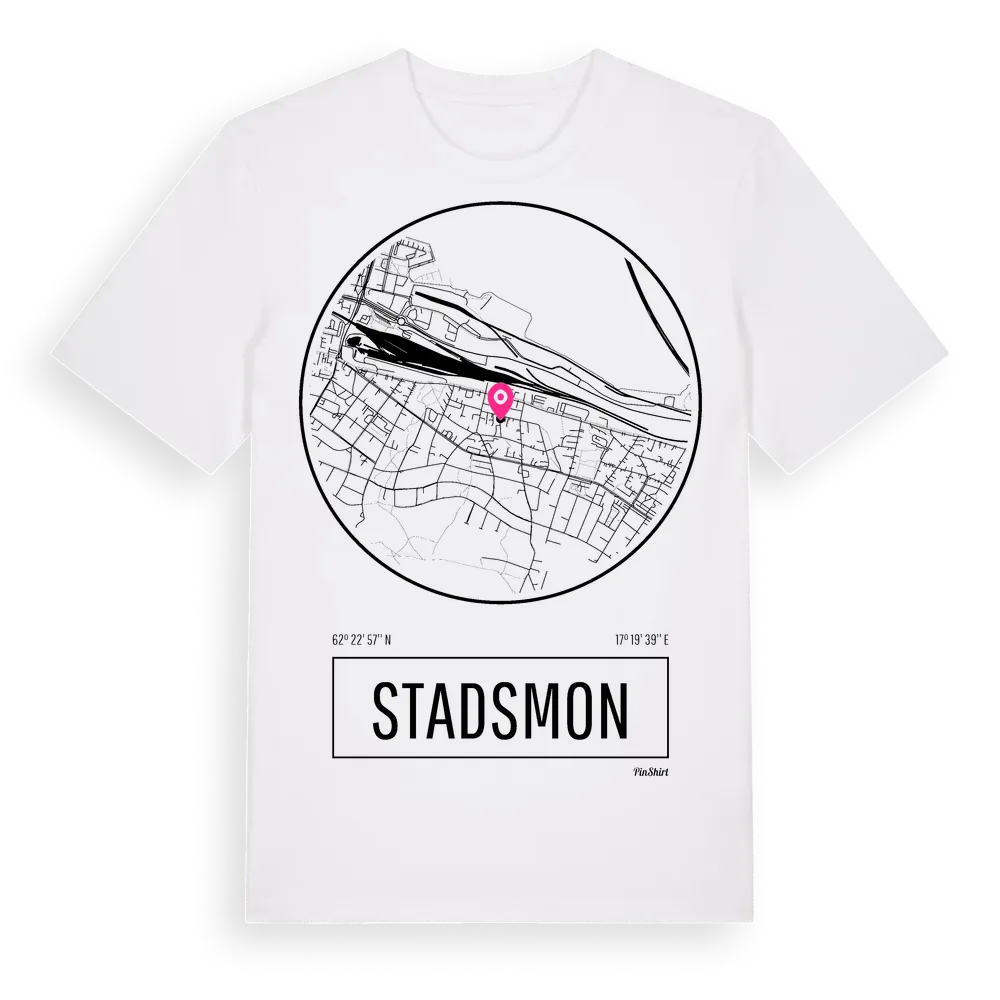 Stadsmon t-shirt är inspirerad av stadsdelen Stadsmon i Västernorrlands län, Sverige. Tröjan är designad för dig som har en speciell koppling till platsen – oavsett om du bor här, har rötterna här eller bara älskar Stadsmon.