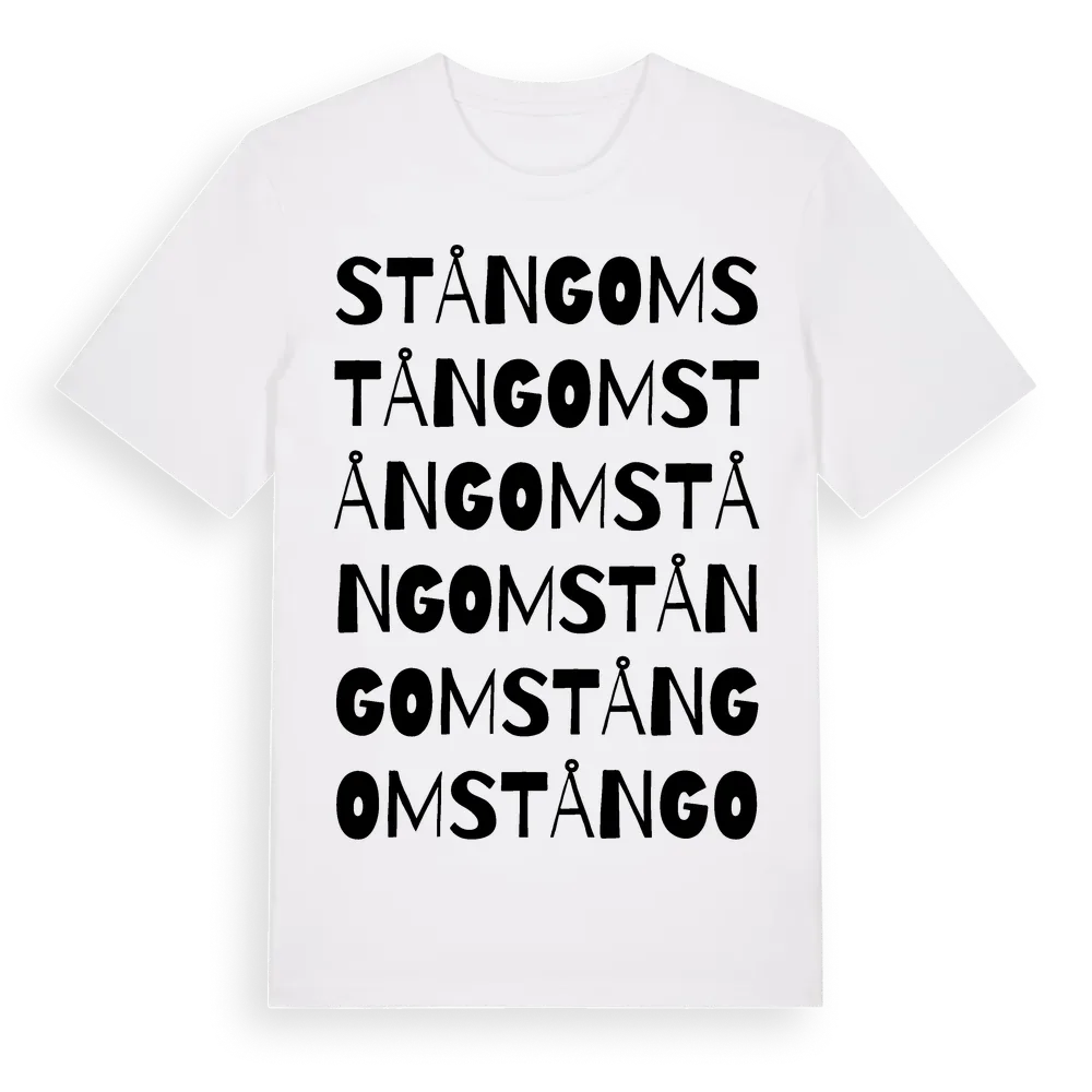 Stångom ordlek t-shirt är inspirerad av byn Stångom i Västernorrlands län, Sverige. Tröjan är designad för dig som har en speciell koppling till platsen – oavsett om du bor här, har rötterna här eller bara älskar Stångom.