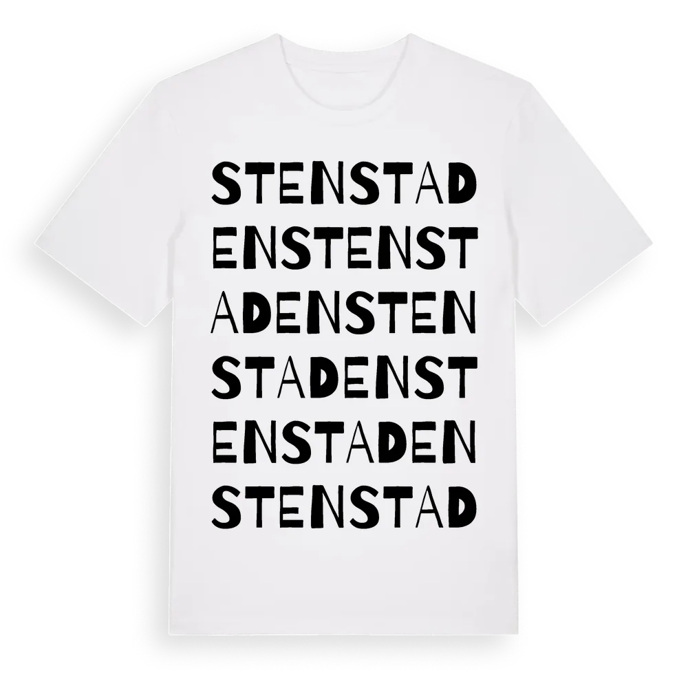 Stenstaden ordlek t-shirt är inspirerad av stadsdelen Stenstaden i Västernorrlands län, Sverige. Tröjan är designad för dig som har en speciell koppling till platsen – oavsett om du bor här, har rötterna här eller bara älskar Stenstaden.