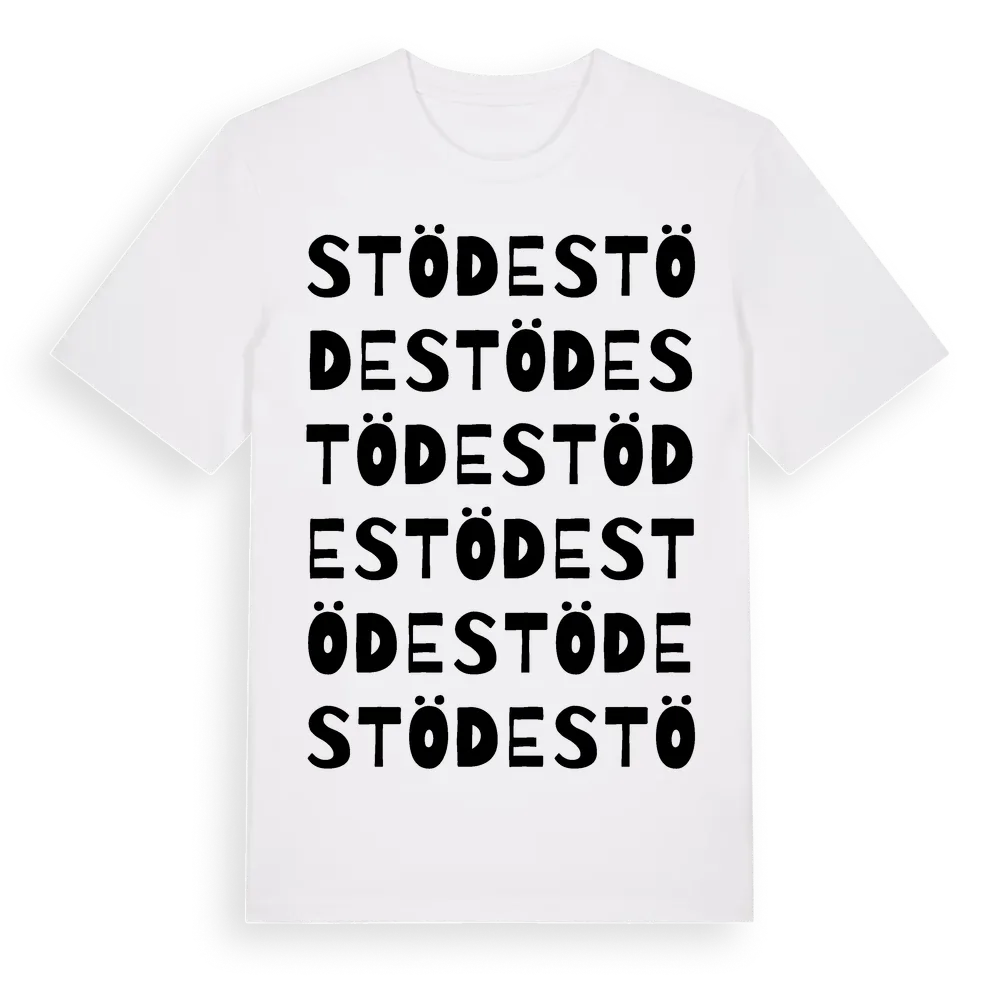 En ordlek byggd på Stödes namn. Subtilt och klurig – ett motiv som bara de som verkligen känner platsen fullt ut förstår. Premium bomull, unisex – från byn Stöde i Västernorrlands län.