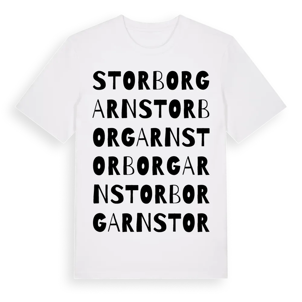 Storborgarn ordlek t-shirt är inspirerad av byn Storborgarn i Västernorrlands län, Sverige. Tröjan är designad för dig som har en speciell koppling till platsen – oavsett om du bor här, har rötterna här eller bara älskar Storborgarn.