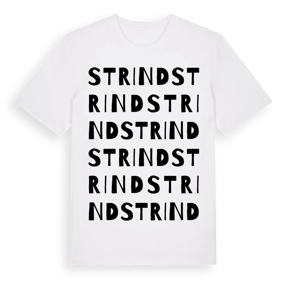 Strind ordlek t-shirt är inspirerad av byn Strind i Västernorrlands län, Sverige. Tröjan är designad för dig som har en speciell koppling till platsen – oavsett om du bor här, har rötterna här eller bara älskar Strind.