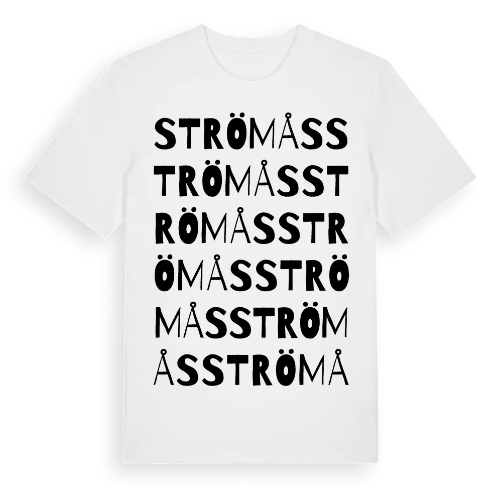 Strömås ordlek t-shirt är inspirerad av byn Strömås i Västernorrlands län, Sverige. Tröjan är designad för dig som har en speciell koppling till platsen – oavsett om du bor här, har rötterna här eller bara älskar Strömås.