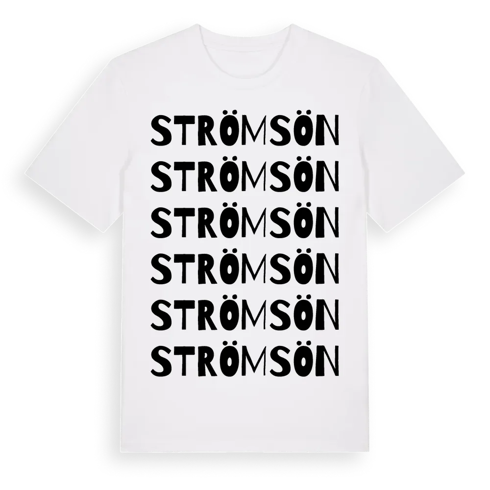 Strömsön ordlek t-shirt är inspirerad av byn Strömsön i Västernorrlands län, Sverige. Tröjan är designad för dig som har en speciell koppling till platsen – oavsett om du bor här, har rötterna här eller bara älskar Strömsön.