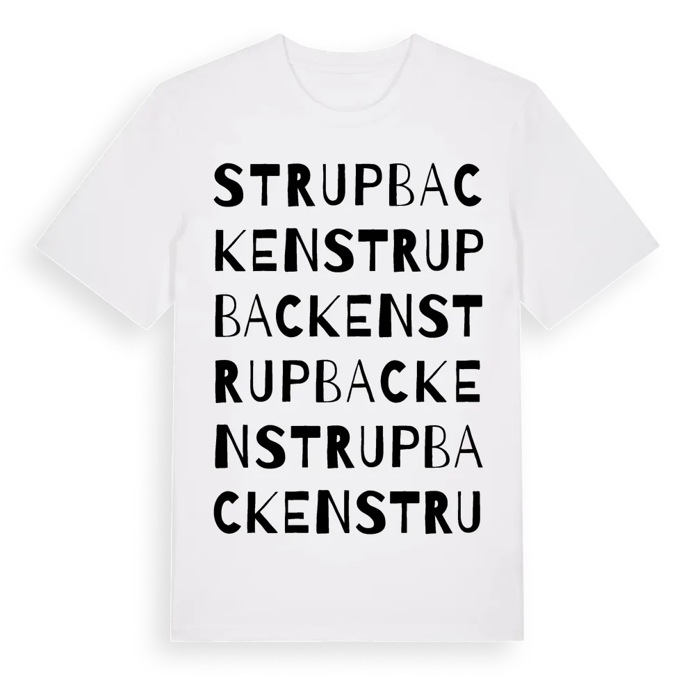 Strupbacken ordlek t-shirt är inspirerad av Strupbacken i Västernorrlands län, Sverige. Tröjan är designad för dig som har en speciell koppling till platsen – oavsett om du bor här, har rötterna här eller bara älskar Strupbacken.