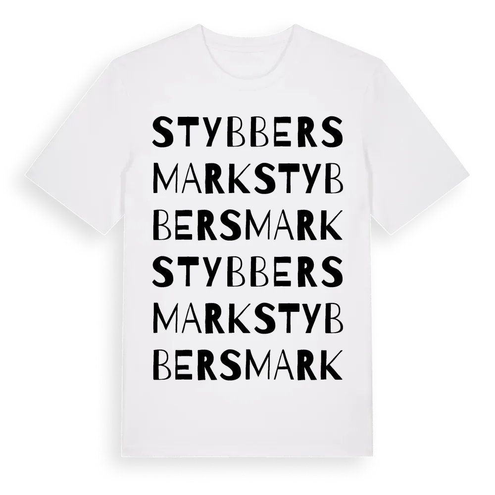 Stybbersmark ordlek t-shirt är inspirerad av byn Stybbersmark i Västernorrlands län, Sverige. Tröjan är designad för dig som har en speciell koppling till platsen – oavsett om du bor här, har rötterna här eller bara älskar Stybbersmark.