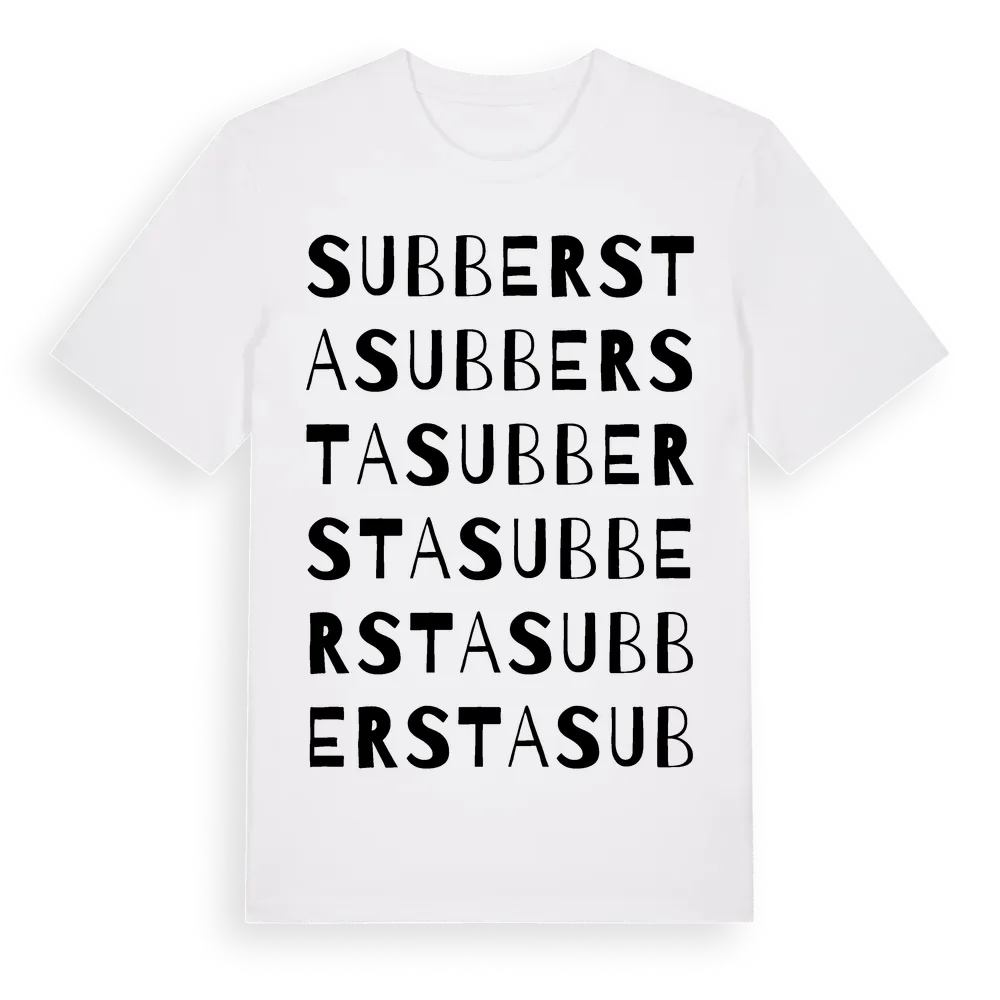 Subbersta ordlek t-shirt är inspirerad av byn Subbersta i Västernorrlands län, Sverige. Tröjan är designad för dig som har en speciell koppling till platsen – oavsett om du bor här, har rötterna här eller bara älskar Subbersta.