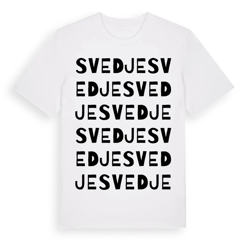 Svedje ordlek t-shirt är inspirerad av byn Svedje i Västernorrlands län, Sverige. Tröjan är designad för dig som har en speciell koppling till platsen – oavsett om du bor här, har rötterna här eller bara älskar Svedje.