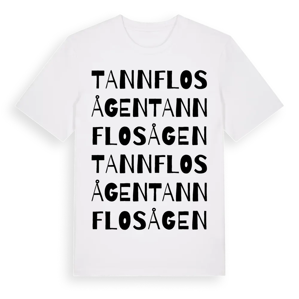 En ordlek byggd på Tannflosågens namn. Subtilt och klurig – ett motiv som bara de som verkligen känner platsen fullt ut förstår. Premium bomull, unisex – från Tannflosågen i Västernorrlands län.