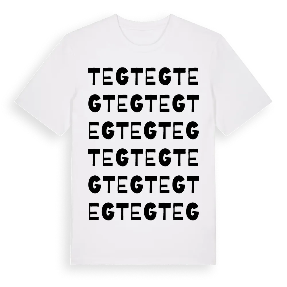 Teg ordlek t-shirt är inspirerad av byn Teg i Västernorrlands län, Sverige. Tröjan är designad för dig som har en speciell koppling till platsen – oavsett om du bor här, har rötterna här eller bara älskar Teg.