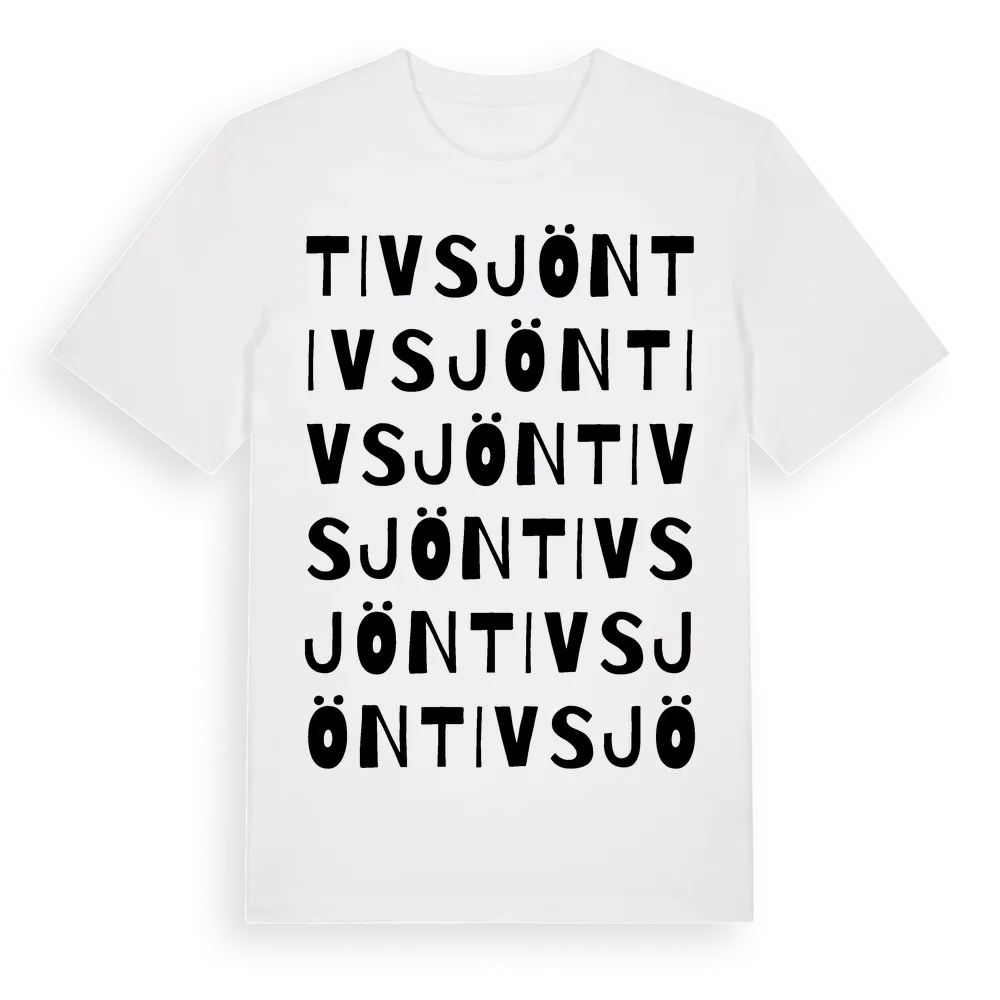 Tivsjön ordlek t-shirt är inspirerad av byn Tivsjön i Västernorrlands län, Sverige. Tröjan är designad för dig som har en speciell koppling till platsen – oavsett om du bor här, har rötterna här eller bara älskar Tivsjön.