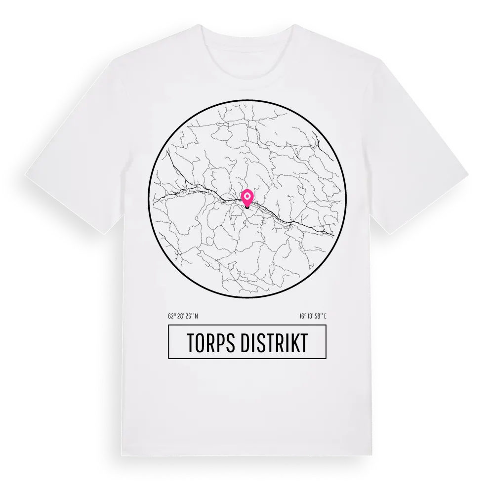 Torps Distrikt t-shirt är inspirerad av Torps Distrikt i Västernorrlands län, Sverige. Tröjan är designad för dig som har en speciell koppling till platsen – oavsett om du bor här, har rötterna här eller bara älskar Torps Distrikt.