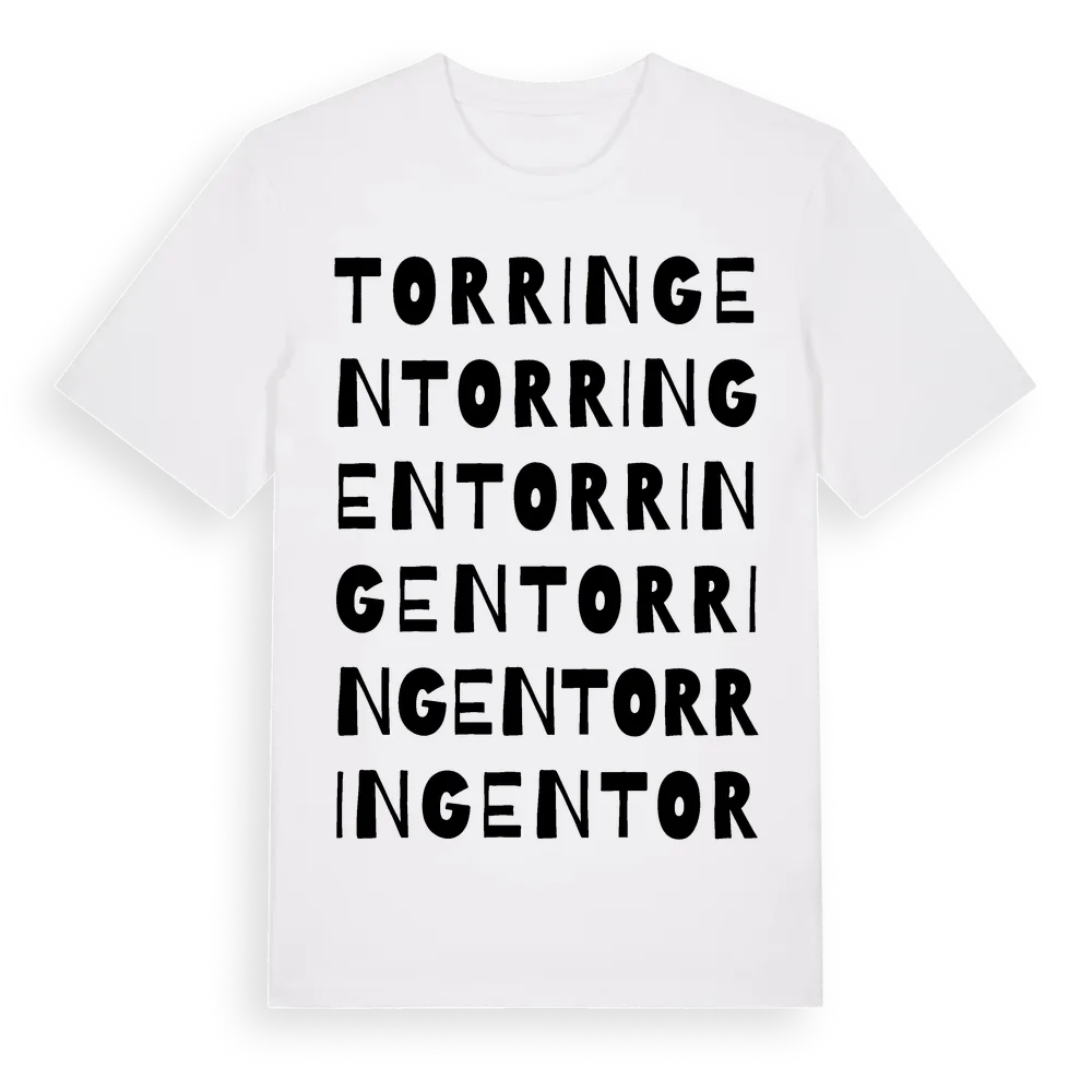 Torringen ordlek t-shirt är inspirerad av byn Torringen i Västernorrlands län, Sverige. Tröjan är designad för dig som har en speciell koppling till platsen – oavsett om du bor här, har rötterna här eller bara älskar Torringen.