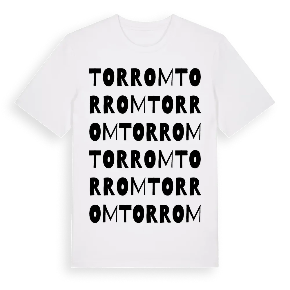 En ordlek byggd på Torroms namn. Subtilt och klurig – ett motiv som bara de som verkligen känner platsen fullt ut förstår. Premium bomull, unisex – från byn Torrom i Västernorrlands län.