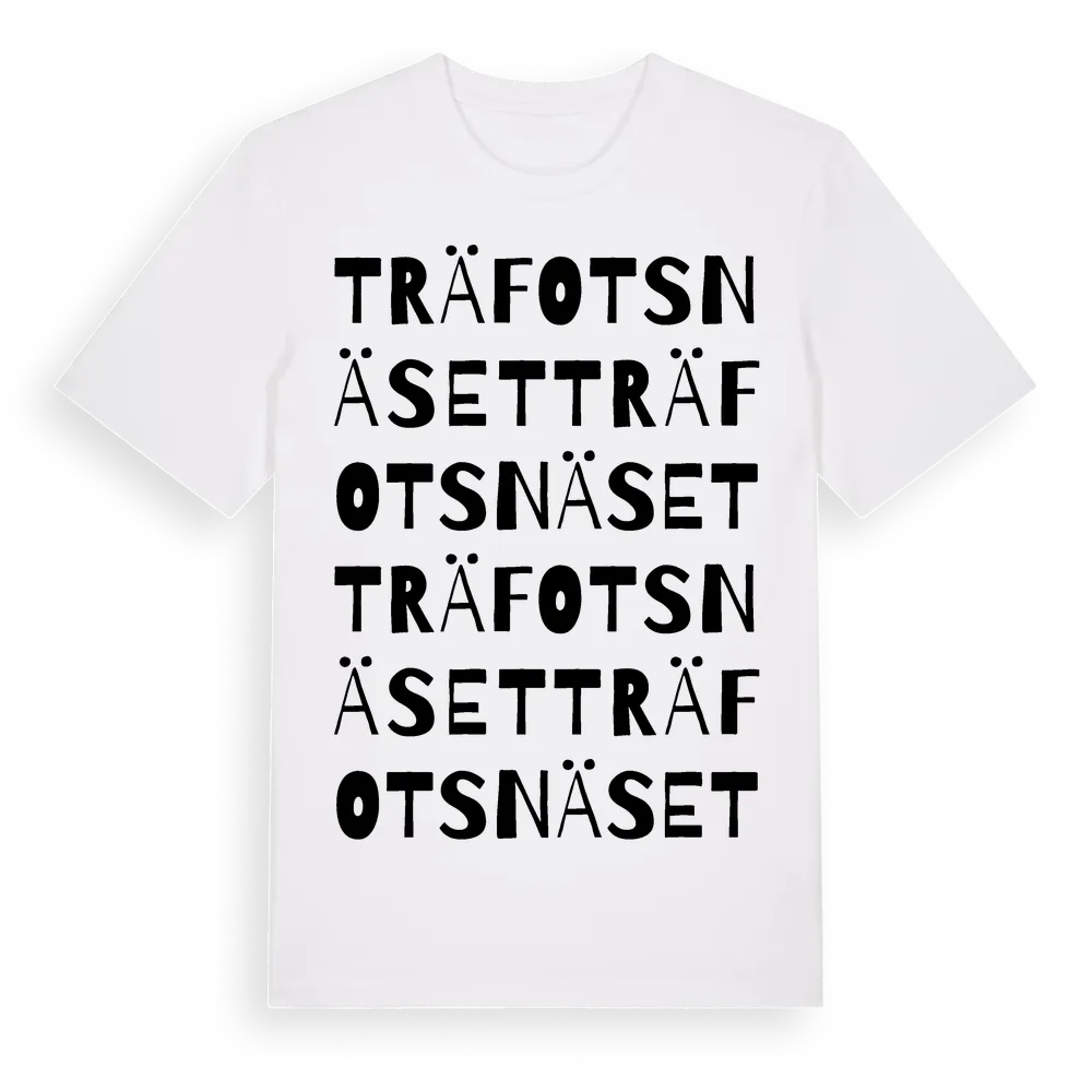 Träfotsnäset ordlek t-shirt är inspirerad av Träfotsnäset i Västernorrlands län, Sverige. Tröjan är designad för dig som har en speciell koppling till platsen – oavsett om du bor här, har rötterna här eller bara älskar Träfotsnäset.