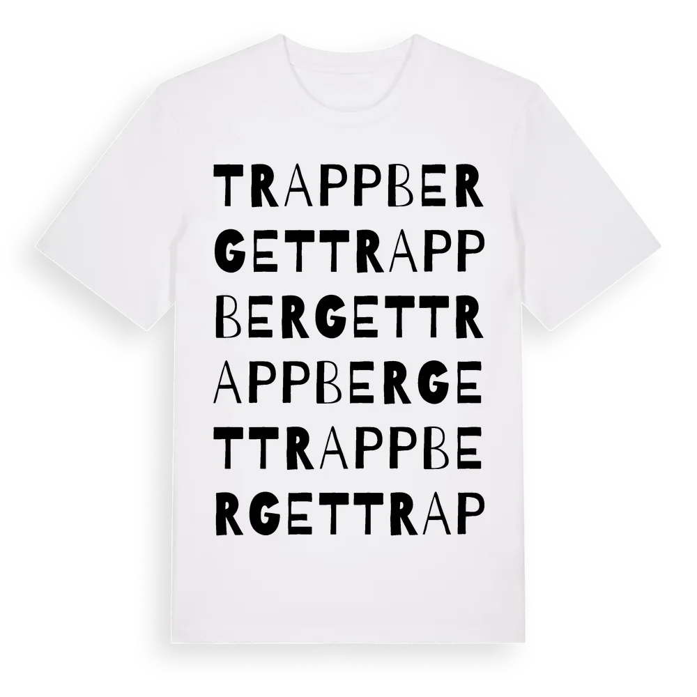 Trappberget ordlek t-shirt är inspirerad av Trappberget i Västernorrlands län, Sverige. Tröjan är designad för dig som har en speciell koppling till platsen – oavsett om du bor här, har rötterna här eller bara älskar Trappberget.