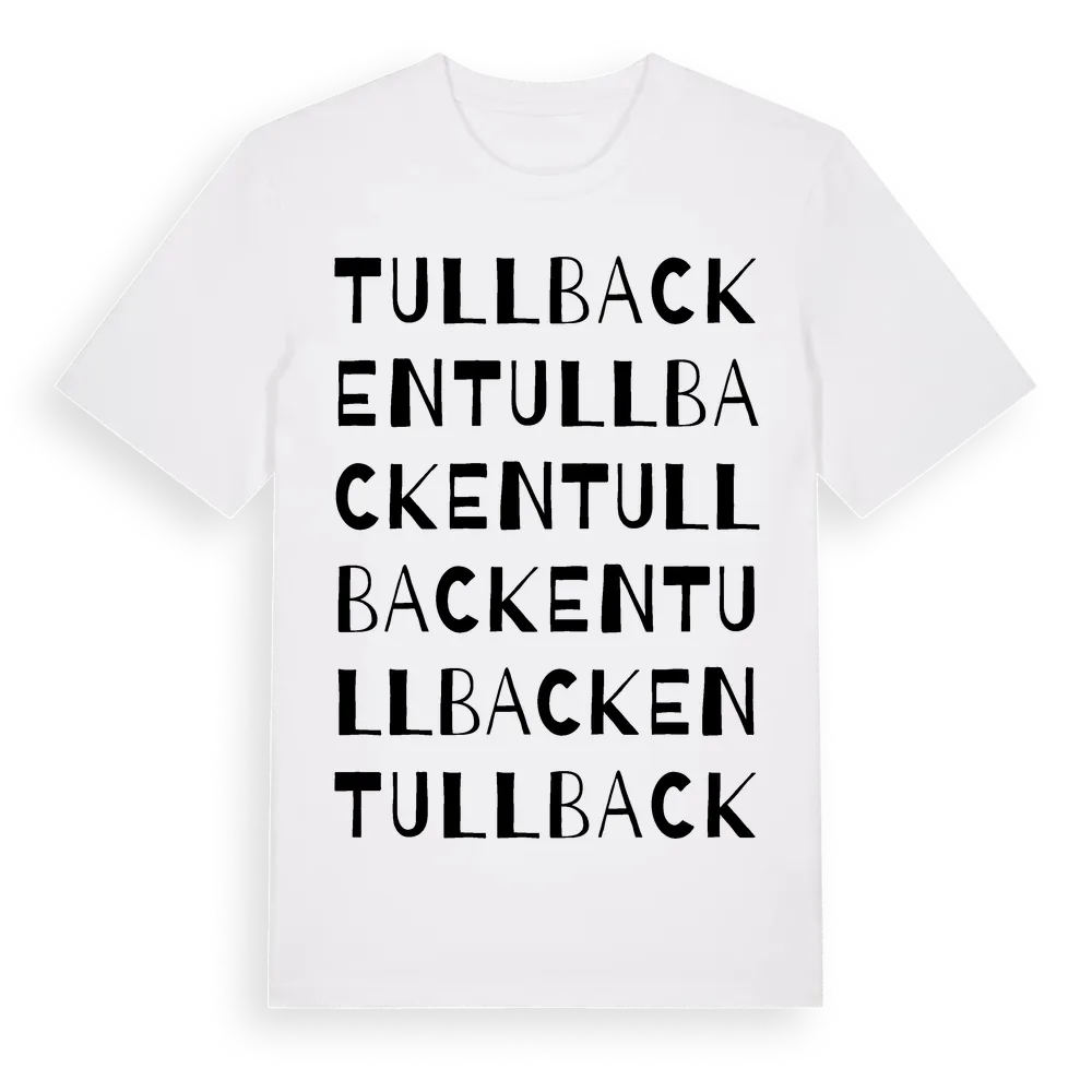 Tullbacken ordlek t-shirt är inspirerad av Tullbacken i Västernorrlands län, Sverige. Tröjan är designad för dig som har en speciell koppling till platsen – oavsett om du bor här, har rötterna här eller bara älskar Tullbacken.